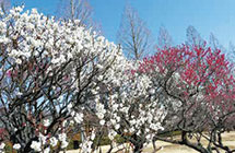 見ごろは2月~3月。白梅・紅梅が約450本。心ゆくまで梅の香りに酔うひとときをお過ごしください。