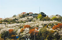 八景山山麓の東部から南部にかけて、古墳時代後期の6基の古墳群が見られます。「古墳公園」と言ってもいいほど、この周辺には大型の古墳が集中しているほか、鶴田知也文学碑、葉山嘉樹文学碑など多くの文学碑があります。3月下旬~4月上旬には桜の花が満開となり、山全体が桜の花で覆われます。