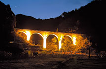 宝珠山橋梁と栗木野橋梁がライトアップされます。いつもとは違う、夜空に浮かび上がった“めがね橋”の幻想的な風景をとらえようと、カメラマンもたくさん訪れます。