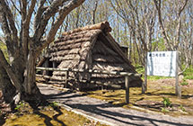 道指定文化財「史跡オムサロ台地竪穴群」の一部を活用した遺跡公園で、約千年前の擦文(さつもん)時代の様子を再現しています。