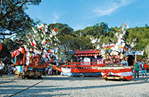 毎年10月初めに行われ、町内を練り歩く豪華な西浦花車や関船、勇太鼓が見られます。