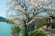 町の中心部の高台にある周囲4キロメートル、貯水量150万トンの池です。遊歩道で囲まれ、春には池を眺めながら満開の桜の下を歩くことが出来ます。また、釣りのスポットとしても大変な人気で、特にヘラブナ釣りは多くの釣り客が訪れます。遊歩道のほかにも吊り橋や浮き橋もあり、バードウォッチングにも最適の場所です。