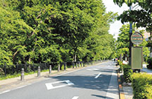 三鷹駅から万助橋までの玉川上水に沿った約800メートルの三鷹のシンボル的な道路。御影石で舗装された歩道やベンチ、ポケットパークの設置と、散歩をするにも楽しいつくりになっています。
