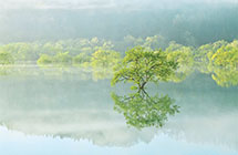一年の中でも春限定の神秘的な風景です。白川湖に雪解け水が流れ込み、満水の時期を迎えると、シロヤナギがあたかも水中から生えているような幻想的な光景を見ることができます。