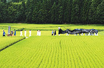 飯豊町を代表する景観です。広がる田園の中に家々が散居しており、家屋の北西側には杉などの針葉樹が植えられ屋敷林を形成しています。農村の営みの中で長い間、守り育て、受け継がれています。