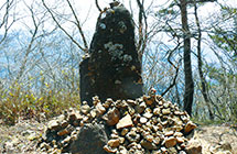 高さ1メートル、巾85センチメートルの大きな自然石に梵字で大日如来を意味するアークという文字が刻まれ、まさにこの山が修験密教の世界であることを表しています。